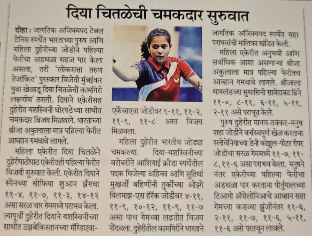 राष्ट्रीय मानांकन स्पर्धेत मुंबईची दिया विजेती