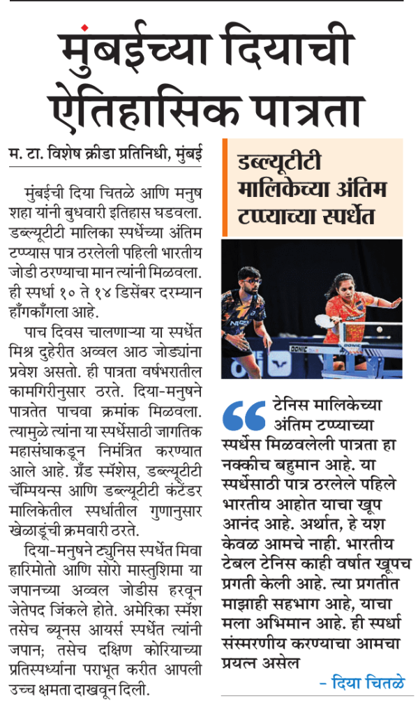 मुंबईच्या दियाची ऐतिहासिक पात्रता